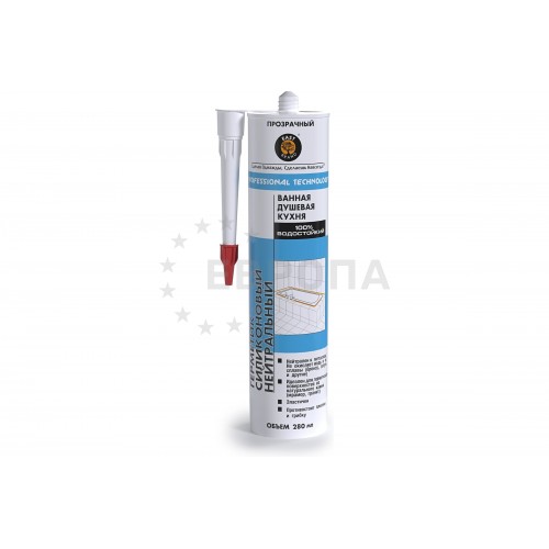 Прозрачный, сантехнический. Cодержит специальные антисептические добавки, препятствующие образованию плесени и грибков.